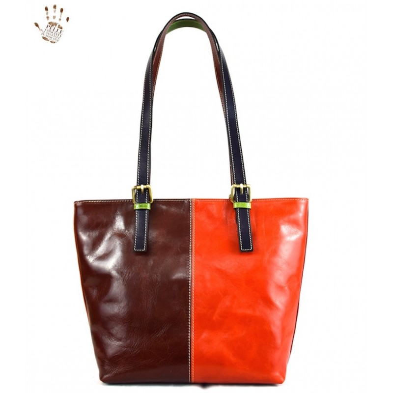 Schultertasche aus echtem italienischem, pflanzlich gegerbtem und handgefärbtem Leder. Casual und lineares Design.