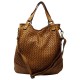 Shopper-Tasche aus weichem echtem italienischem Leder mit handgeflochtenem Muster auf der Vorderseite.