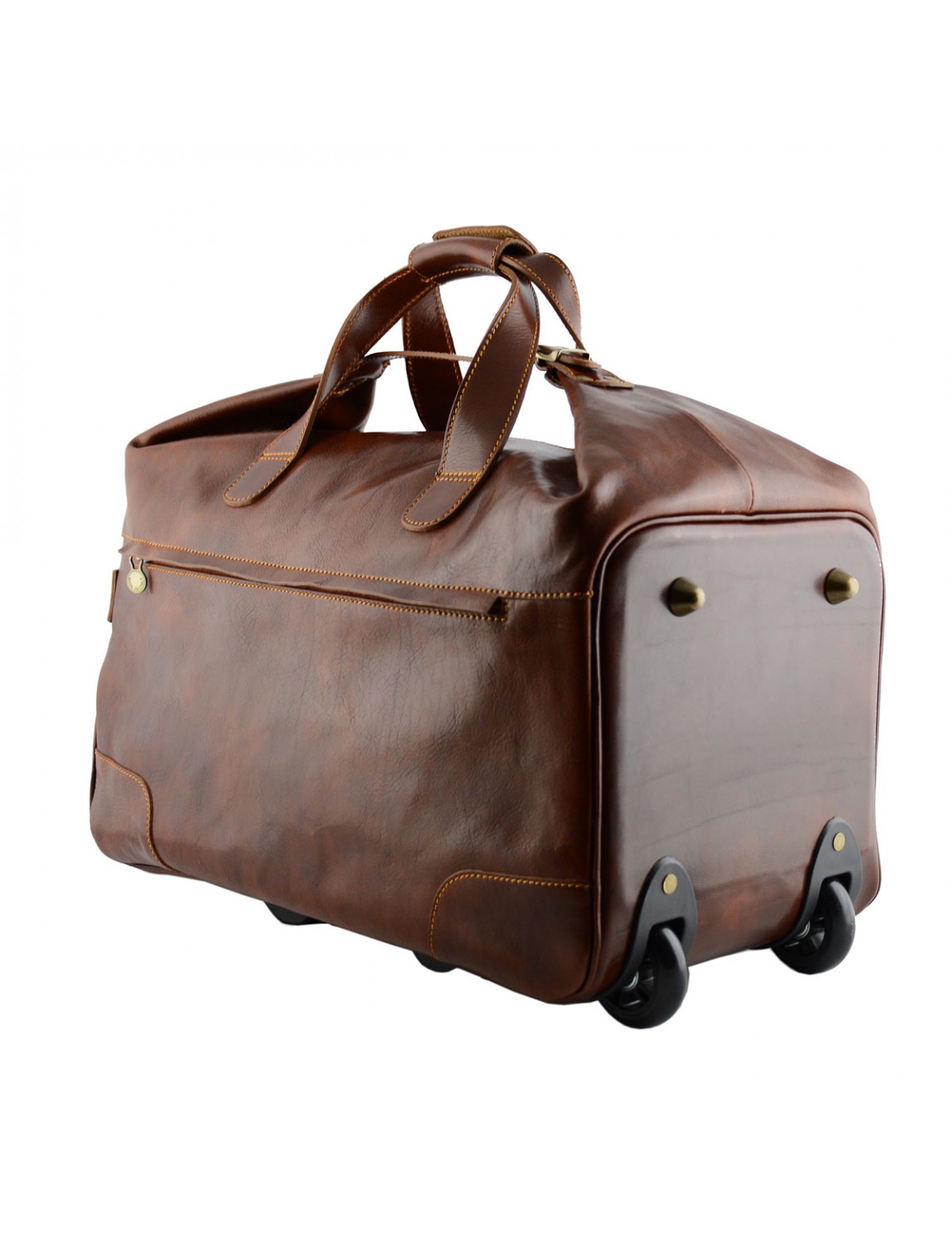 Trolley Reisetasche aus echtem 100% italienischem Leder. Klassisches und elegantes Design; seine Räder und seiner dehnbare Handgriff ermöglichen Ihnen, diese Tasche auf jedem Reise bequem zu tragen.