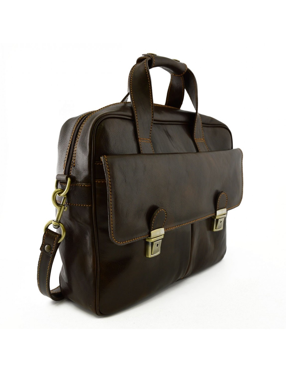 Business briefcase in genuine Italian leather hand-buffered and polished on the outside.