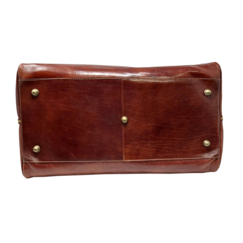 Travel bag in genuine Italian leather buffered by hand. Classic design that adapts to both an elegant and casual style.