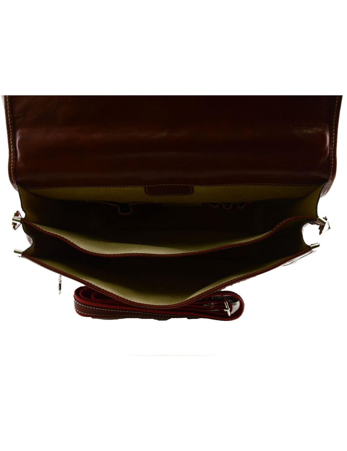 Maletín de piel verdadera, tamponada a mano y pulida al exterior. Piel 100% Made in Italy. Maletín clásico, de design