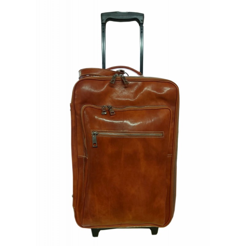 Élégant trolley en cuir véritable italien tamponné à la main. Extrêmement spacieux, il est le trolley parfait pour ceux qui veulent voyager avec l'élégance typique de la maroquinerie toscane traditionnelle. Très robuste, adapté pour voyager avec style.