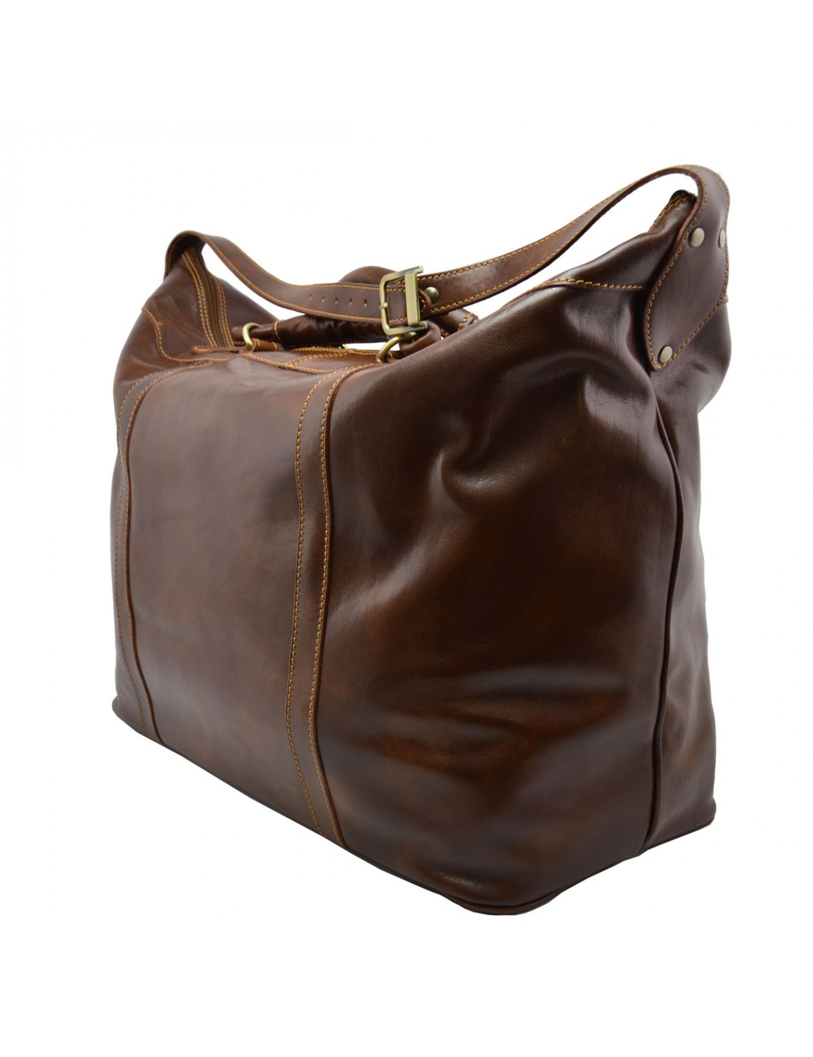 Borsa viaggio in vera pelle italiana tamponata a mano. Spaziosissima e pratica.