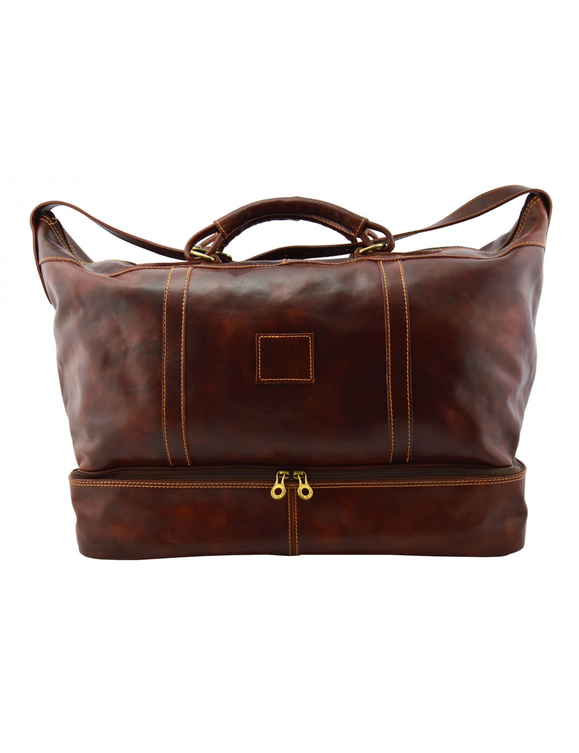 Borsa viaggio in vera pelle italiana tamponata a mano. Molto grande, spaziosa e pratica.